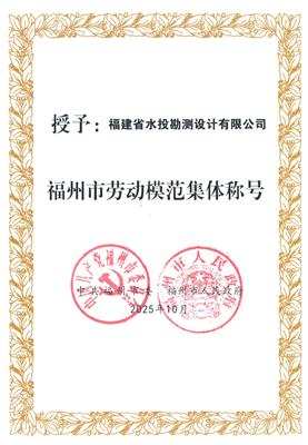 水投設(shè)計(jì)公司榮獲“福州市勞動模范集體”